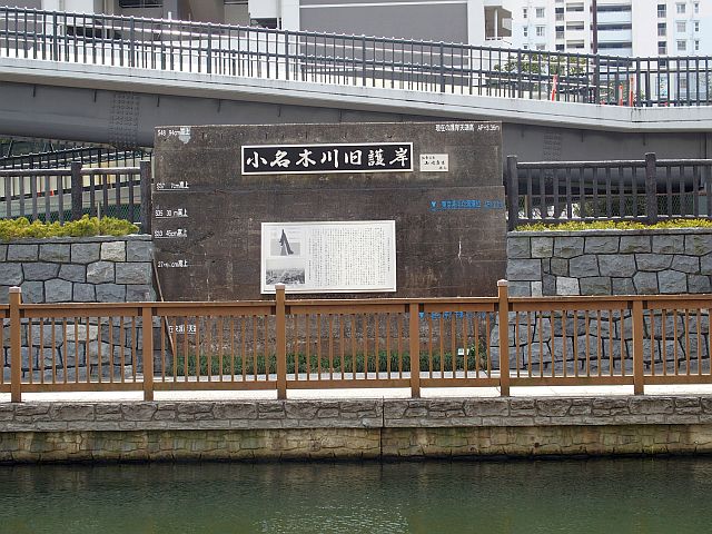 南側の散歩道("塩の道")に設置されている旧護岸の説明板。